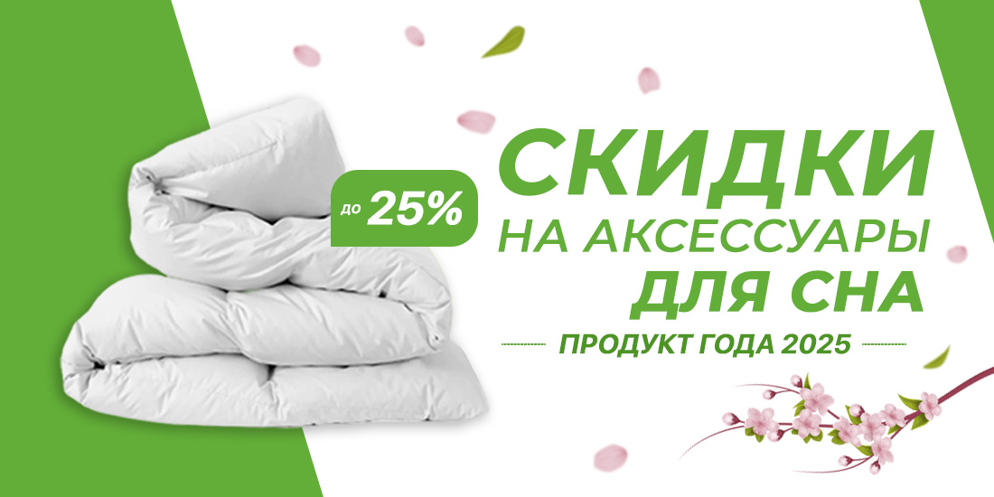 Дарим скидки до 25 % на аксессуары для сна c 01 по 31 марта 2026 года.