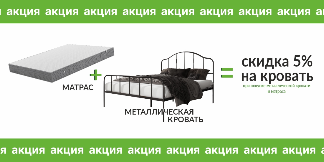 При покупке металлической кровати с матрасом вы получаете скидку 5% на кровать!