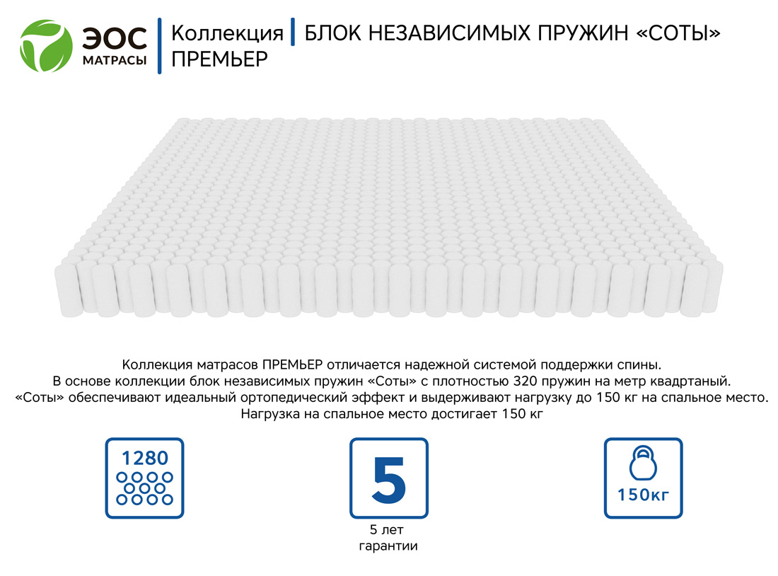 Матрас EOS Премьер 14 – это уникальное соотношение жесткости и упругости для поддержки всего вашего тела.