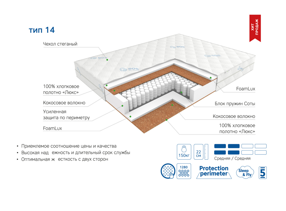 Главная > Каталог > Матрасы > Премьер > Матрас ЭОС Премьер Тип 14