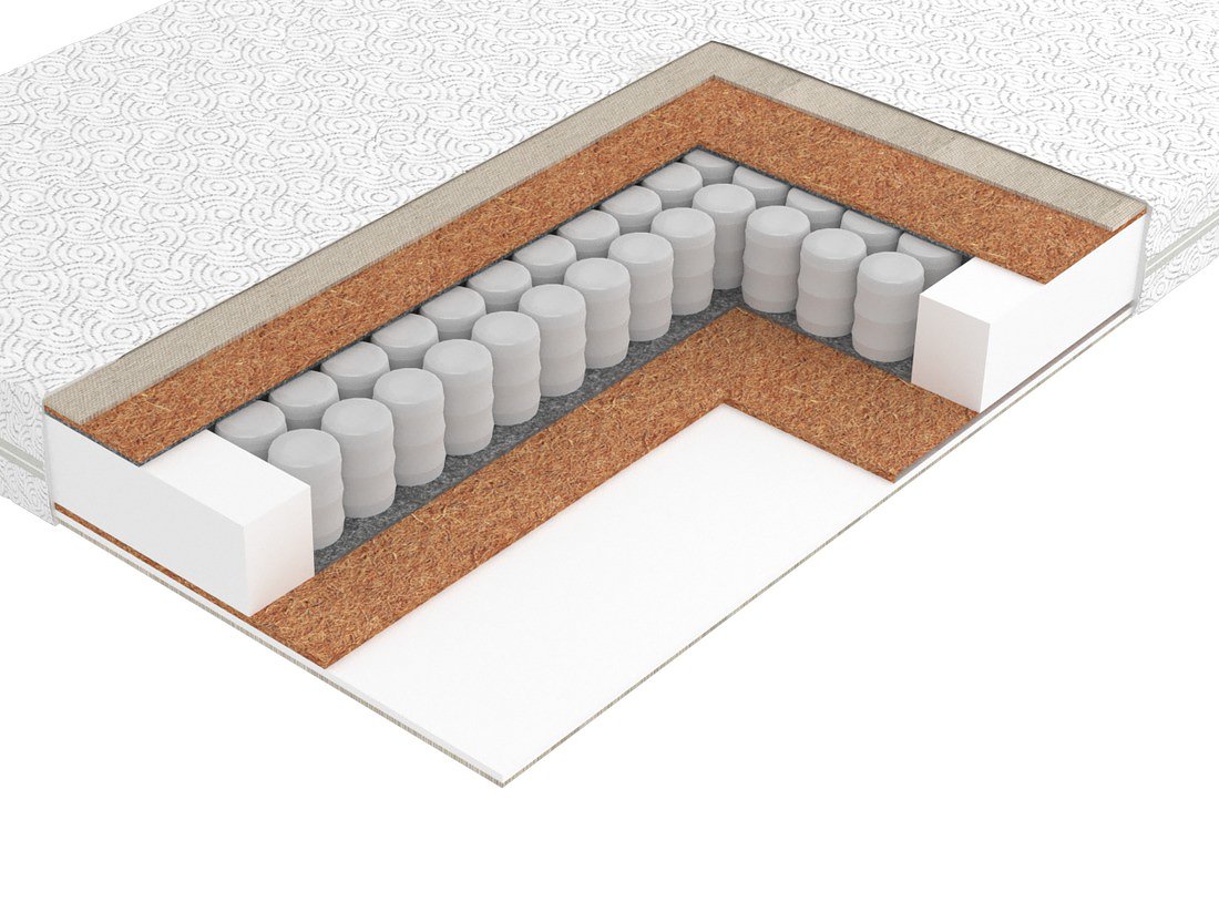 · Хлопковое полотно. Натуральный материал, состоящий из нескольких слоёв спрессованной хлопковой нити. Изолирует чехол матраса от шероховатостей других наполнителей, применяется для водной и воздушной регуляции, обеспечивает идеальный микроклимат.