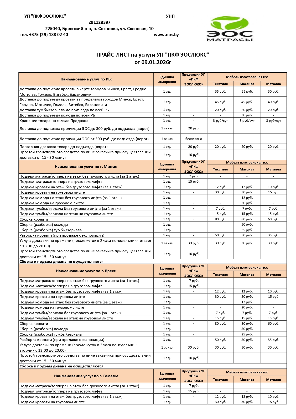 В торг. реестре № 384053 с 08.06.2017 г. Свидетельство о гос. рег. №0092576 от 14.04.2014г., Брестский райисполком, УНП 291128397. Юр.адрес: 225030, Республика Беларусь, Брестский район, п. Сосновка, ул. Сосновая 10