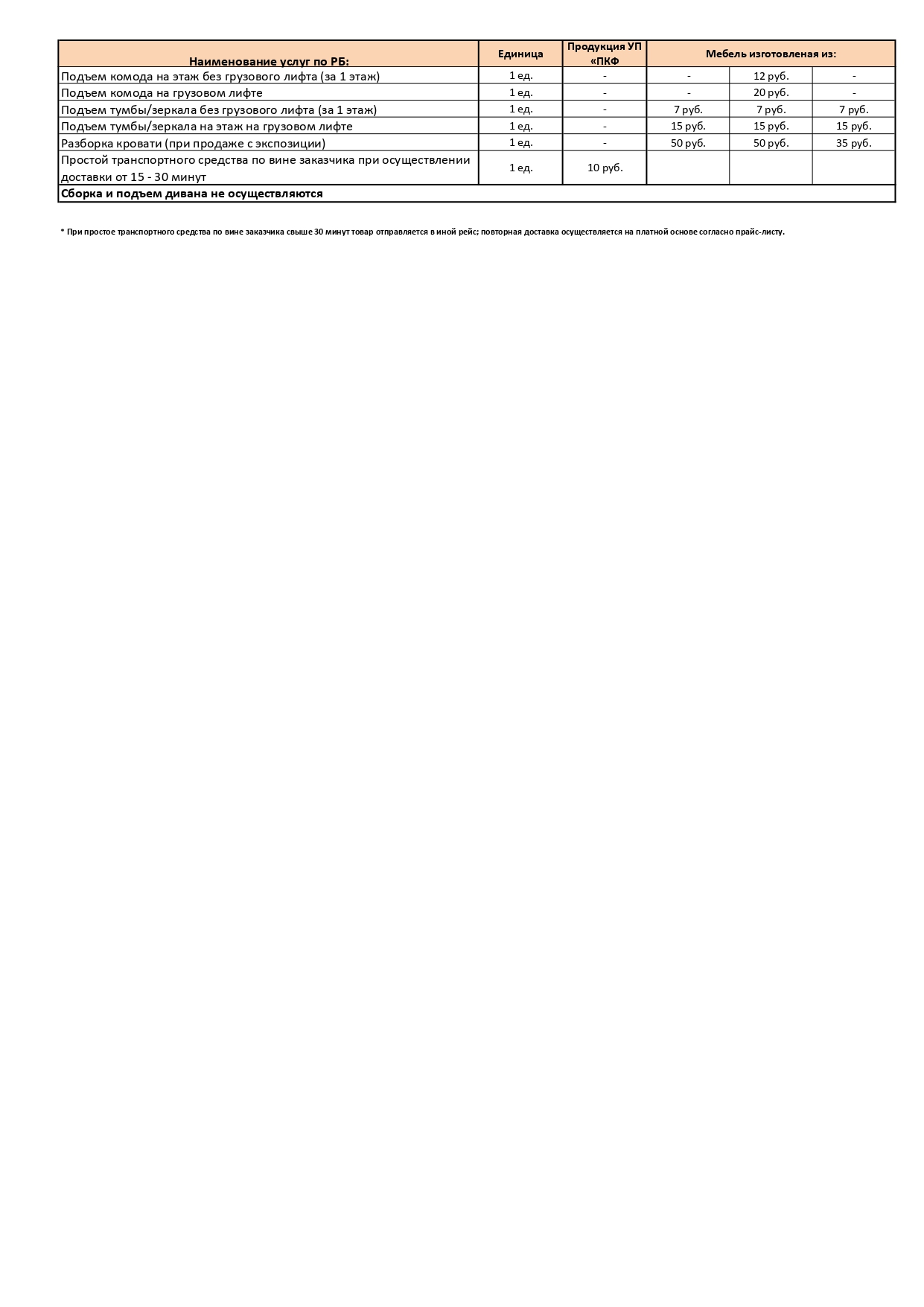 Прайс-лист на услуги